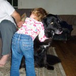 When Matilda came along in 2006 Mac rolled with the punches without even a blip. He quickly took to hanging out around the baby when she was on the floor, not so much protecting her as just being near her. Things really looked up for Mac when she started eating table food. She could hang on him, squeeze his fur and he would patiently wait for a moment where he could make his get-a-way, but he never so much as growled at her. Madman’s entrance to the family was just as easy with Mac. Mac is a fixture in every family photo