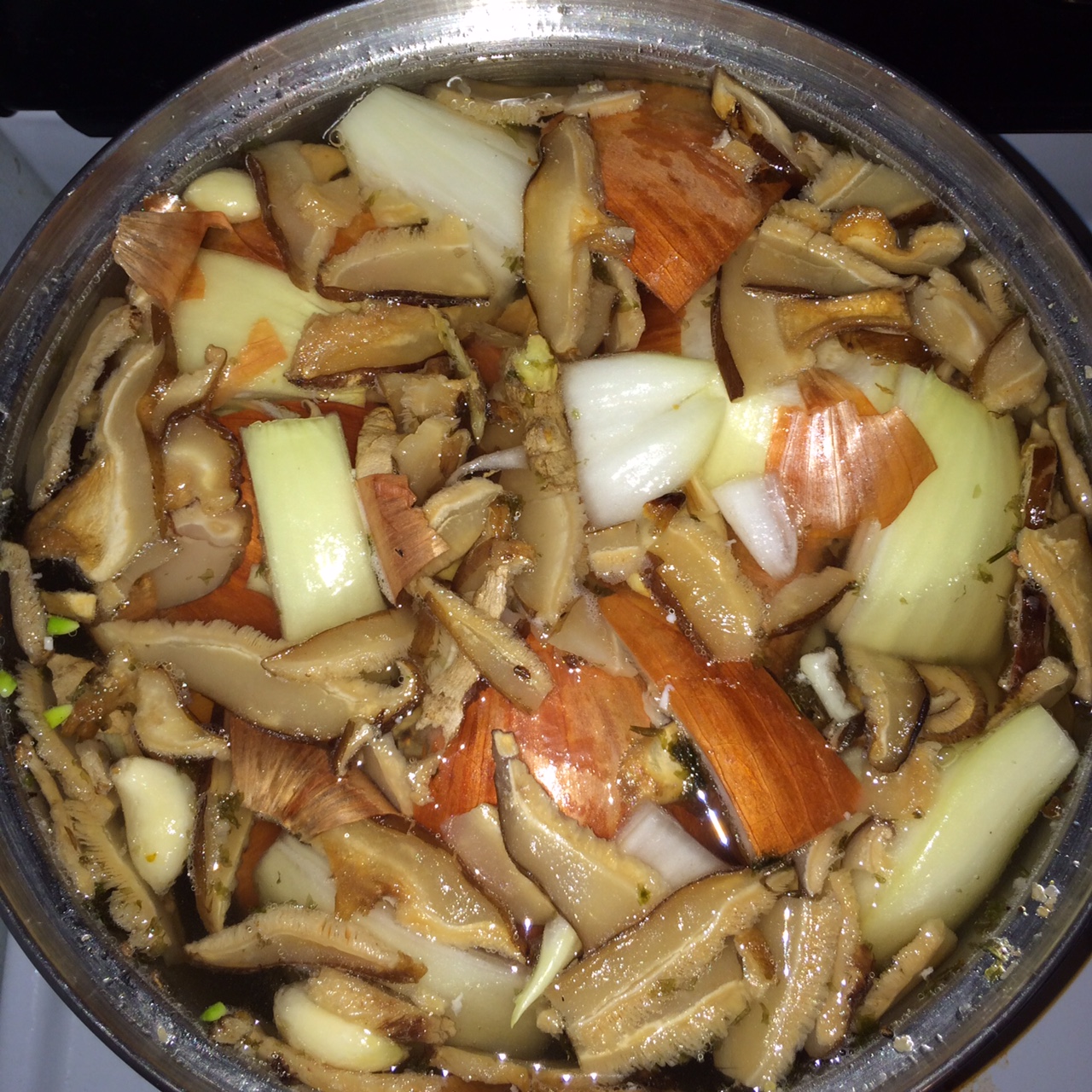 On Saturday I made the broth – basically your standard chicken broth with the not standard (for me) additions of seaweed sheets and dried mushrooms. I always have a chicken carcass or two in the freezer since we roast a chicken almost weekly, so this want’s an issue for us. You may need to plan ahead of you’re not in the habit of having a bone collection in your deep freeze. The house smelled delicious.