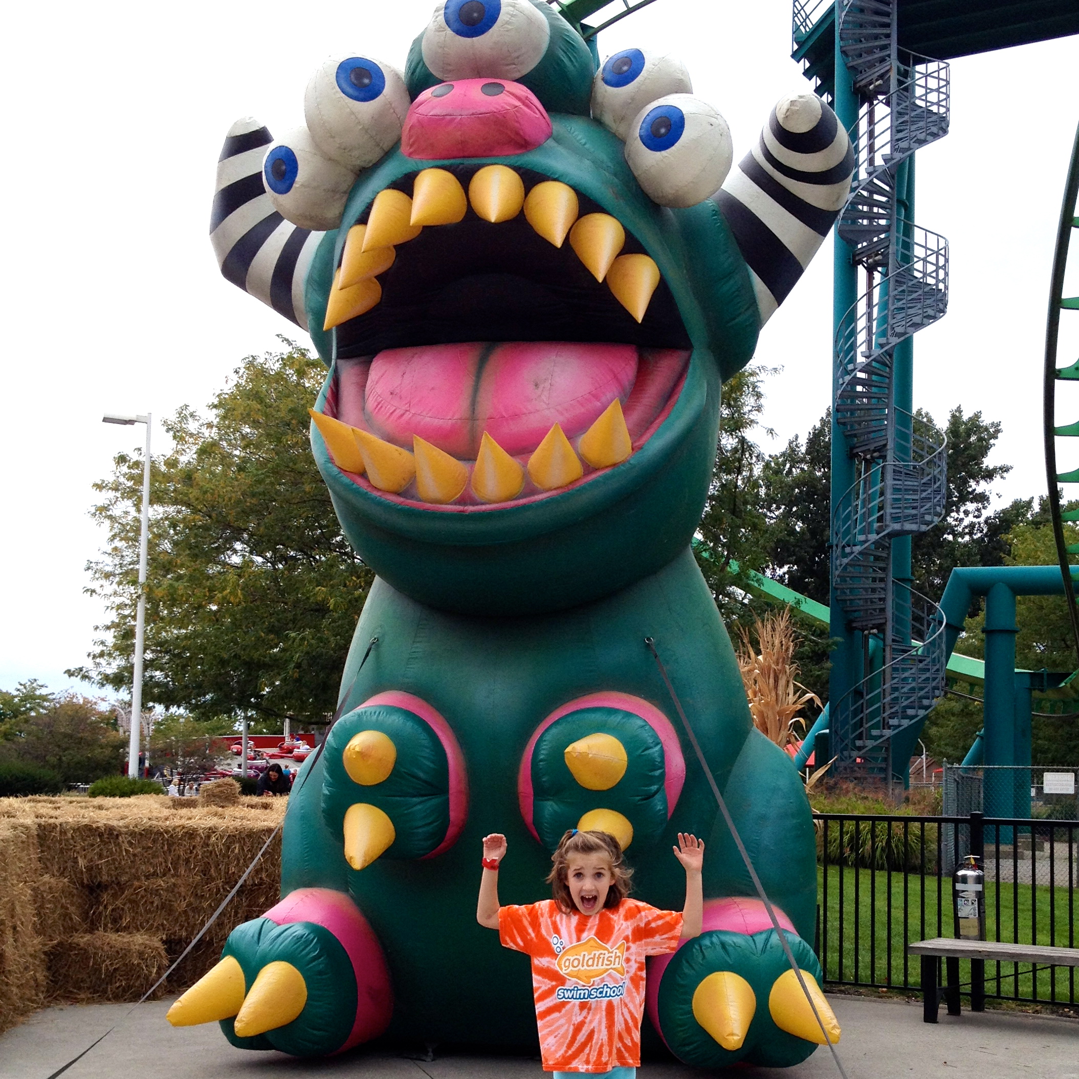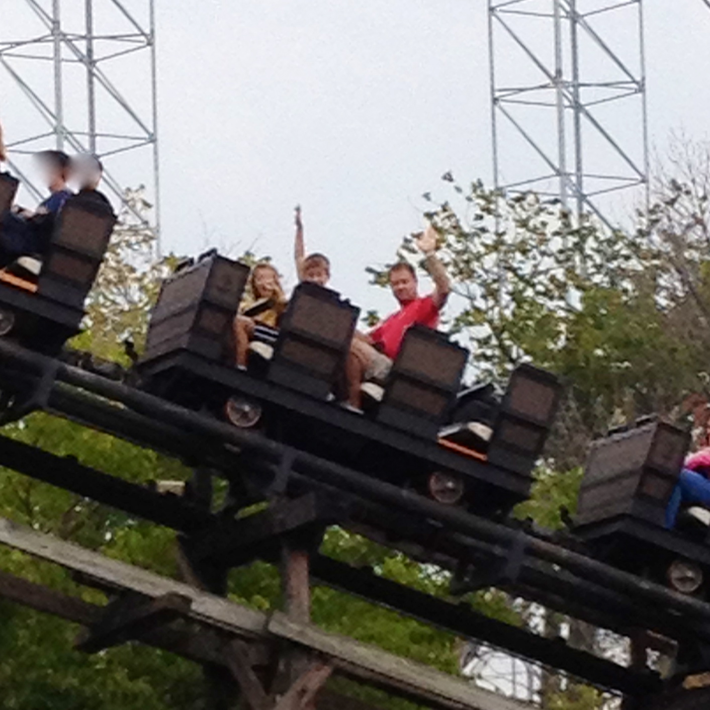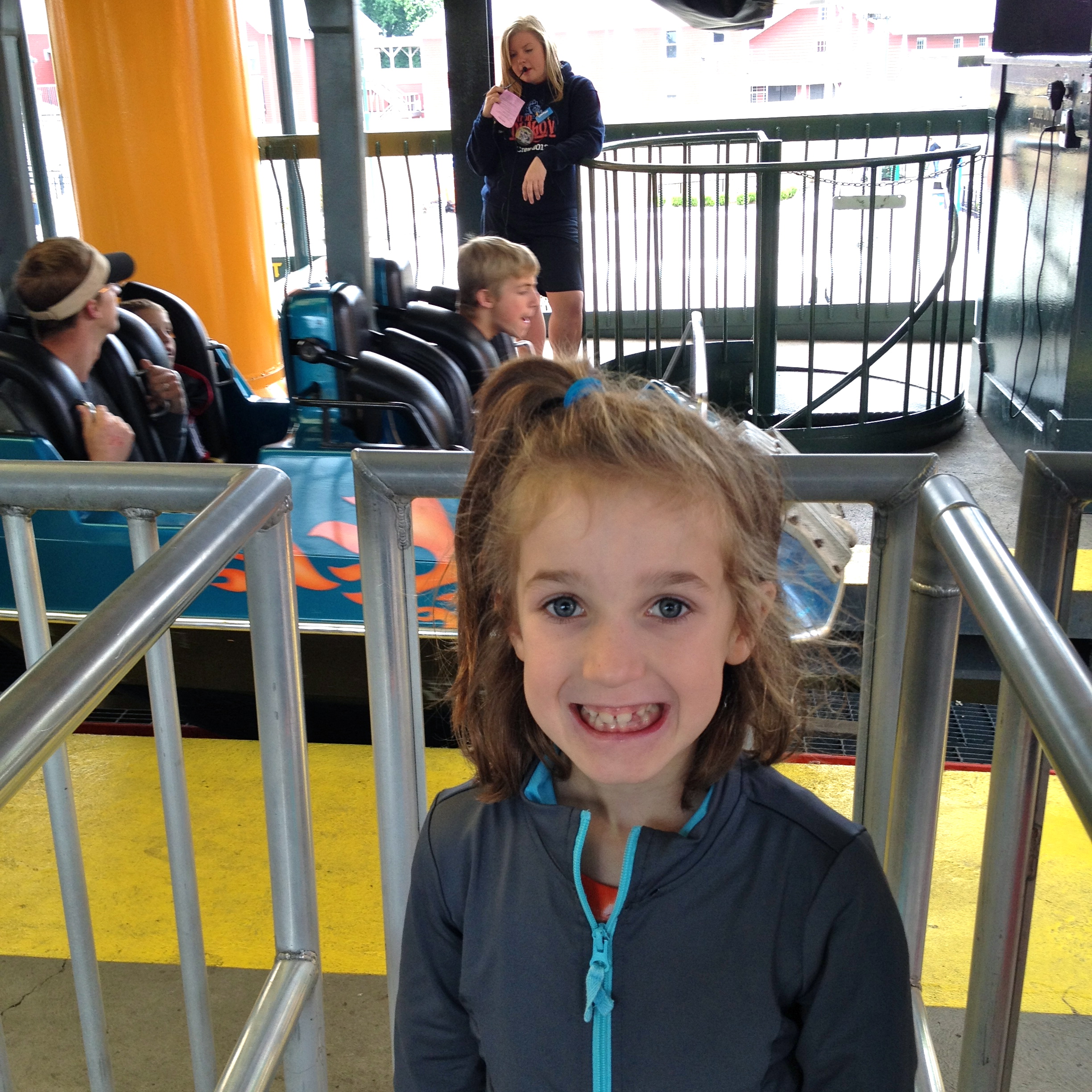 She has refused to even think about riding the Gemini ever since her first time in 2013 that included the train stopping while going up the first hill. After a little bribery (I promised to ride the Pipe Scream with her) she conquered her fear and declared the Gemini “the best ride ever”.
